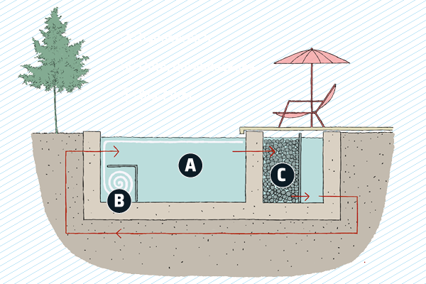 Biopools verbinden die Optik eines klassischen Pools mit einer biologischen Wasseraufbereitung – ganz ohne pflanzliche Filtration. Für Laien sind sie kaum von konven­tionellen Pools zu unterscheiden und ermöglichen chemiefreies Badevergnügen.